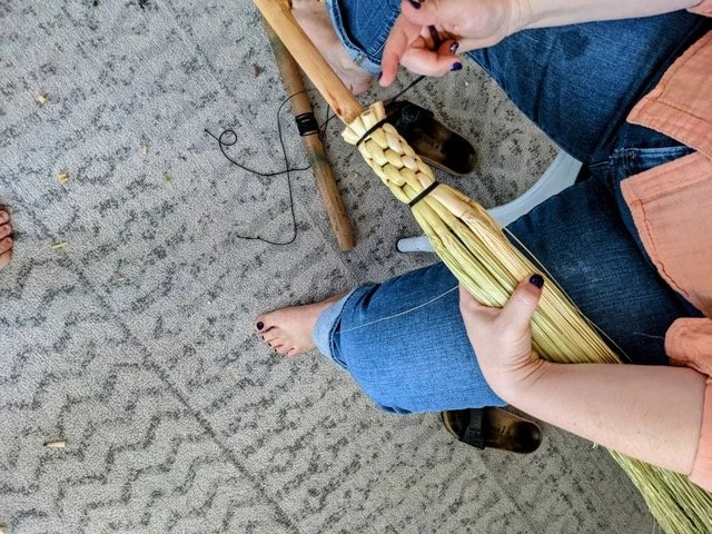 An especially versatile broom, the cobwebber is made for sweeping into high corners and difficult to reach spots. Participants will learn to weave and stitch broomcorn and leave with a functional broom full of unique character. There will be an assortment of natural wood handles to choose from. Open to all beginners. Please be aware that we will be working with damp materials and students may want to bring a small towel for their lap. Broom making is a physical task and moderate hand strength is recommended.